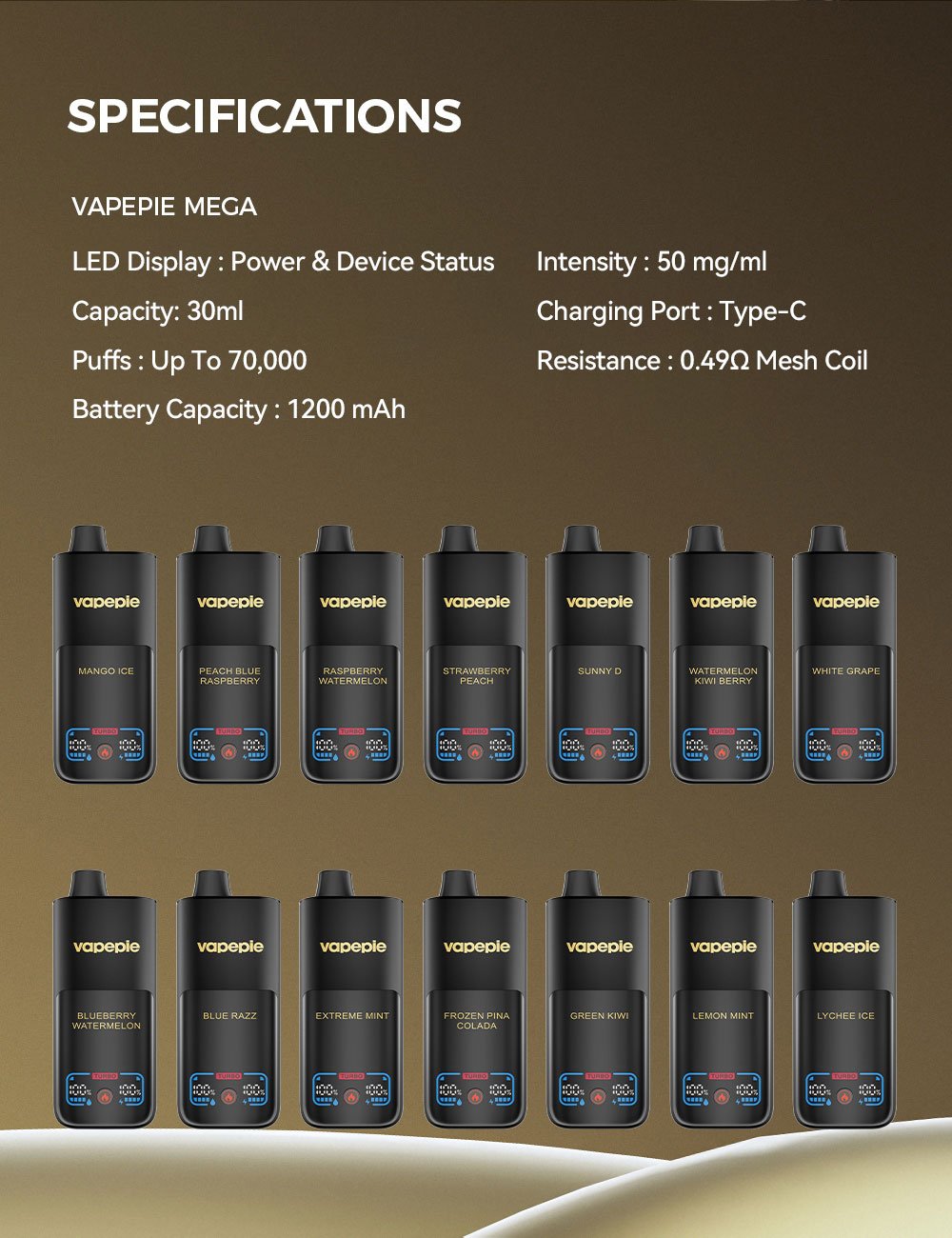 [NEW]VAPEPIE Mega 70000 PUFFS | USA Warehouse | High-Capacity Disposable Vape 7193002
